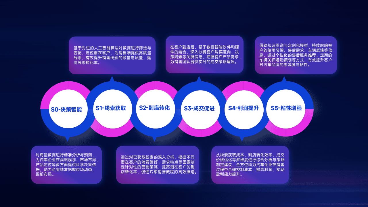通过拓宽潜在客户来源、、优化线索分配并提高到店转化率,,,,以增强销售效率。。。同时,,利用线索数据不断优化分析模型,,有效提升转化率,,,扩大营销影响力。。。。